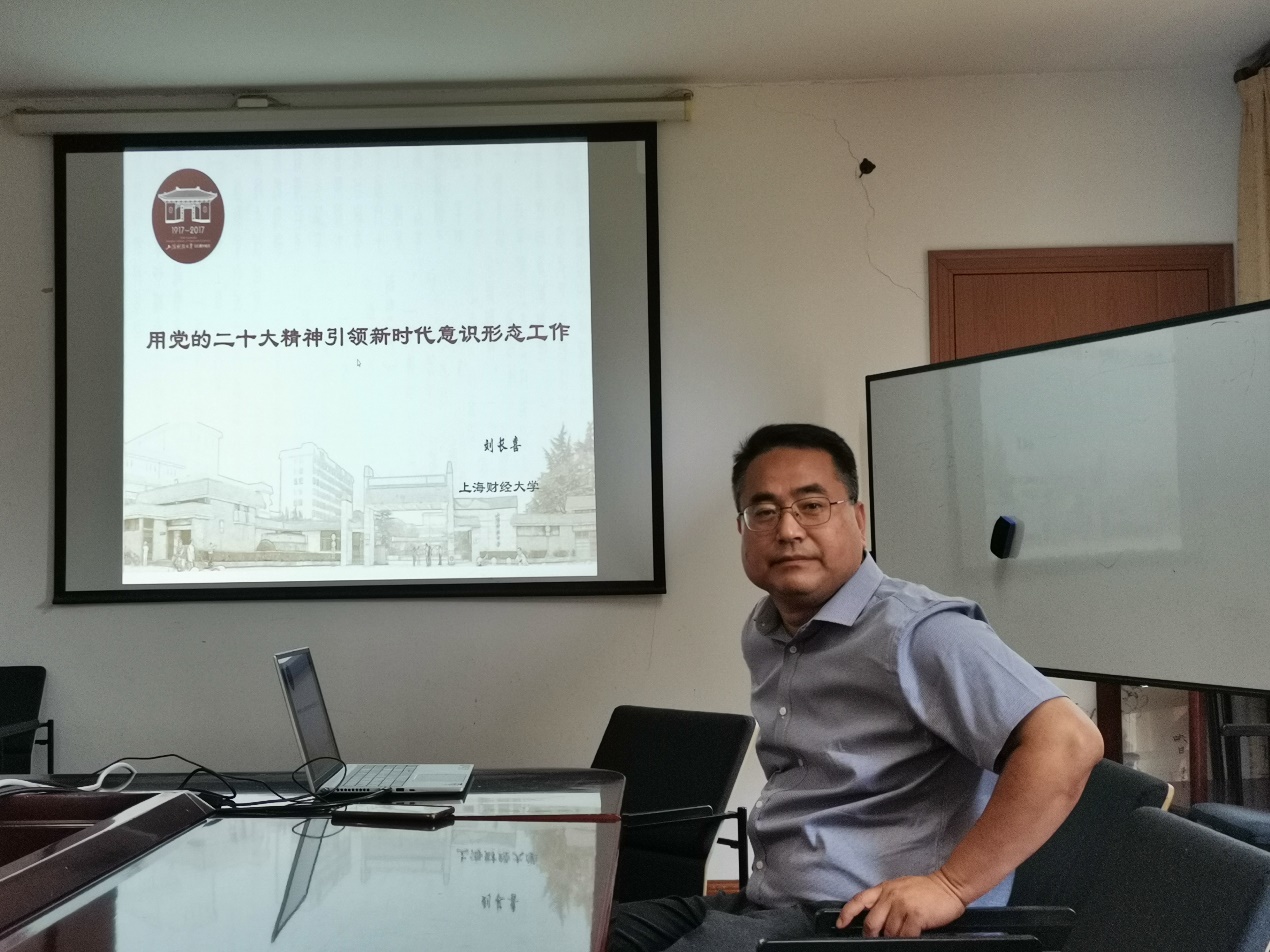 刘长喜老师从意识形态安全的重大意义、二十大报告关于意识形态的重要论述、新时代意识形态安全面临的重大挑战、当前面临的主要意识形态风险、全面学习贯彻二十大精神,共筑意识形态安全堡垒五个方面,对党的二十大精神从社会学角度进行了阐释。