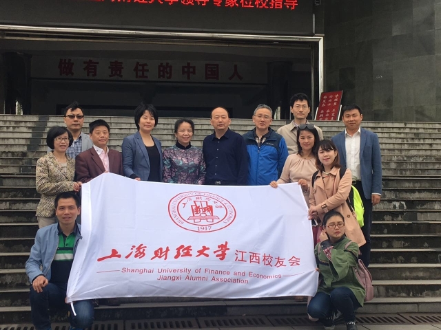 人文学院党委书记杨乐、江西省师大附中张国新校长、上海财经大学江西校友会部分代表合影
