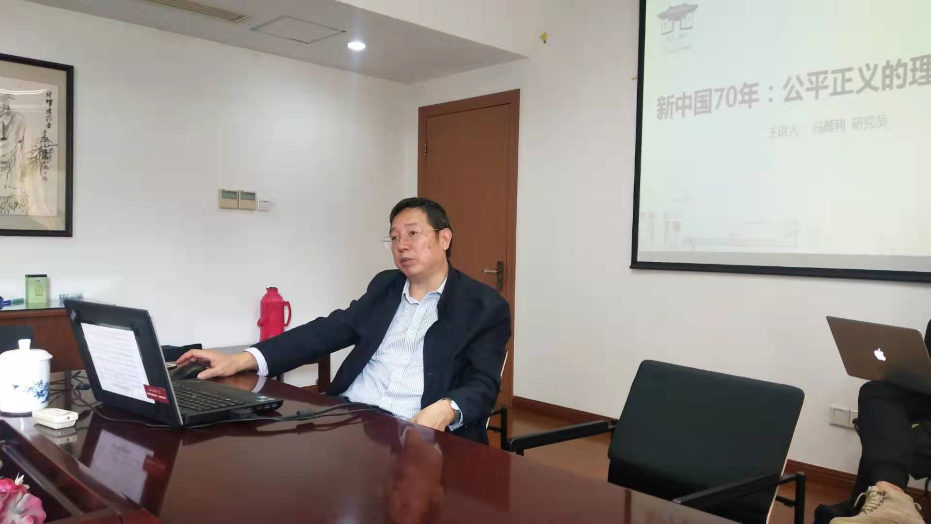 2019年10月12日上午,中国社科院哲学所副所长冯颜利研究员,应邀在我院201会议室做了题为“新中国70年:公平正义的理论与实践”的学术报告。哲学系部分教师和哲学专业的硕士博士研究生,参加了本次学术活动。冯颜利研究员回顾了建国70多年来的公平正义的实践历程,并对此进行了学术性的反思。在学术报告的最后阶段,围绕听讲教师和学生提出的相关问题,进行了学术交流。