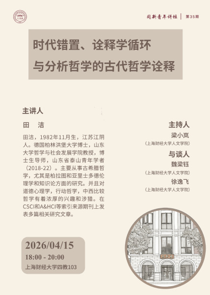 讲座预告|时代错置、诠释学循环与分析哲学的古代哲学诠释