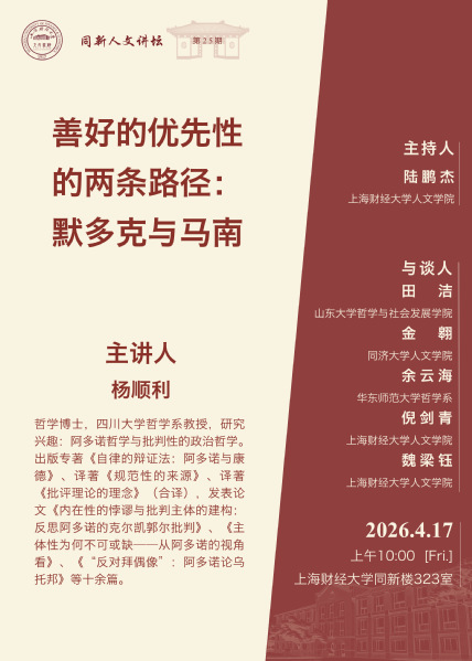 讲座预告|善好的优先性的两条路径:默多克与马南