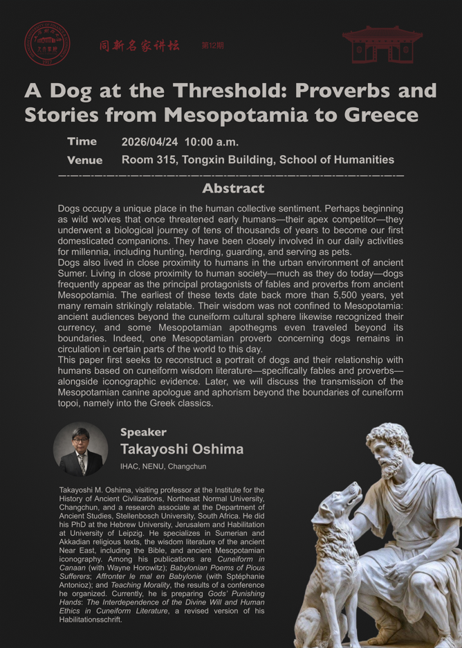 讲座预告|A Dog at the Threshold: Proverbs and Stories from Mesopotamia to Greece