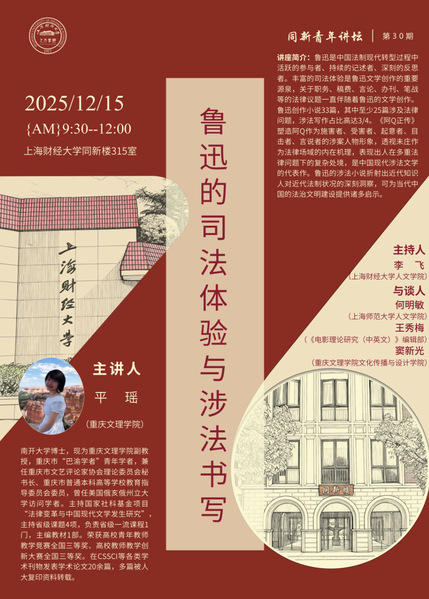 讲座预告|鲁迅的司法体验与涉法书写