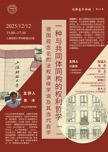 讲座预告|一种与共同体同构的权利哲学——德国观念论的法权演绎学说及其当代启示