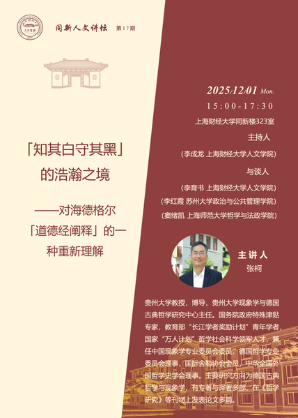 讲座预告|「知其白守其黑」的浩瀚之境 ——对海德格尔「道德经阐释」的一种重新理解