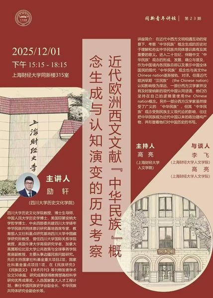 讲座预告|近代欧洲西文文献“中华民族”概念 生成与认知演变的历史考察