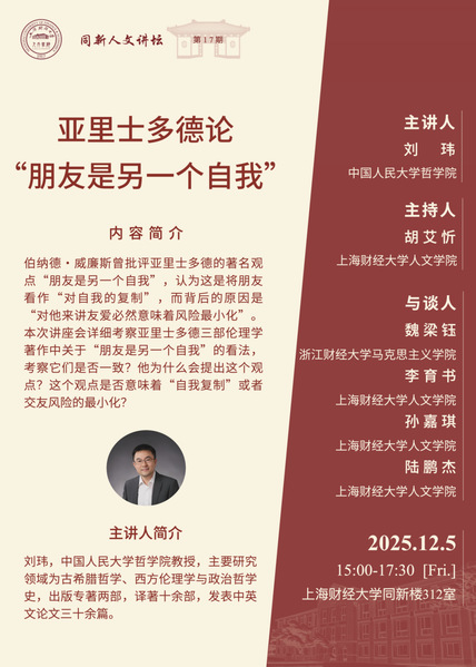 讲座预告|亚里士多德论“朋友是另一个自我”