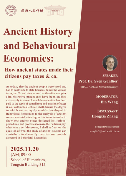 讲座预告 | 古代历史与行为经济学:古代国家如何让公民纳税等