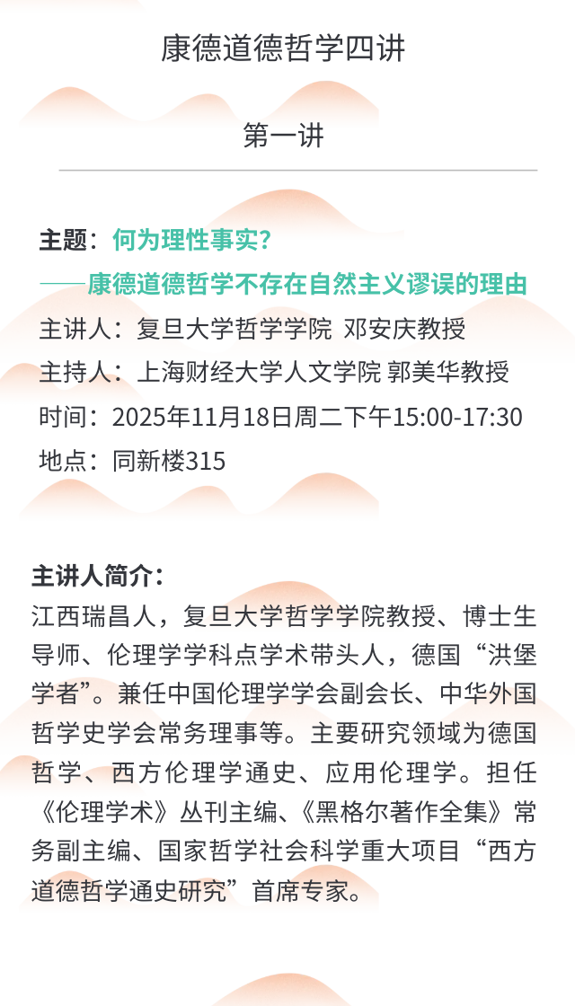 康德道德哲学四讲 | 邓安庆教授:第一讲 何为理性事实?——康德道德哲学不存在自然主义谬误的理由